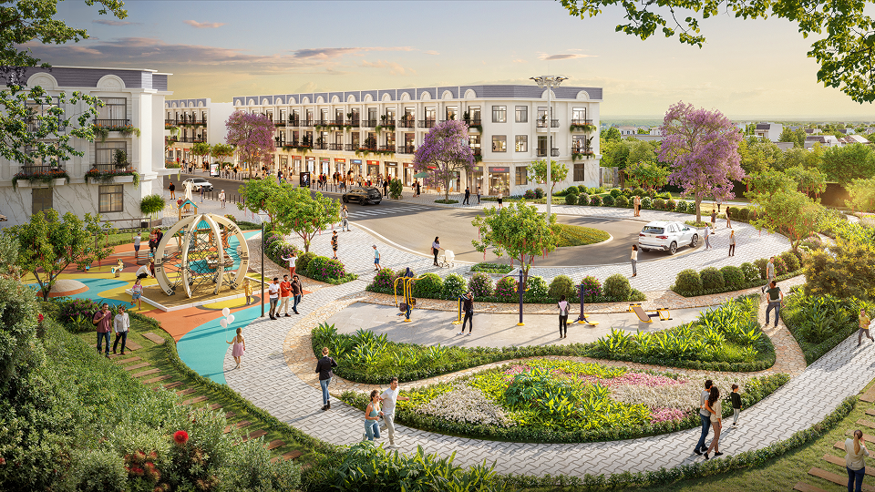 Công viên xanh lớn diện tích hơn 1.500m2, đường dạo bộ và khu vui chơi, thể thao sinh hoạt ngoài trời đáp ứng trọn vẹn chuẩn mực sống hiện đại và giá trị an cư bền vững cho cộng đồng cư dân.